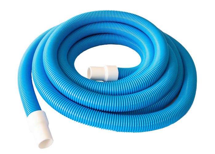 Schwimmbadschlauch im Durchmesser von 38 mm (6/4 Zoll) und einer Gesamtlänge von 12 Meter mit gemufften, verstärkten Enden.